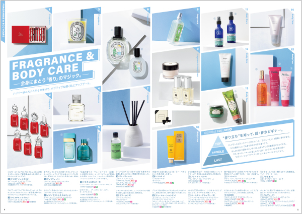 年4回開催 高島屋 大阪店・京都店合同の化粧品プロモーション。百貨店が取り扱う旬のコスメをメインターゲットであるオフィスワーカーの女性たちにどう響かせるかという課題に対し、まずはクライアントとディスカッションをしながら全体のコンセプトを策定。そのコンセプトを元に、コスメや社会のトレンドを鑑みながらコピーライティング、イラストレーション、撮影背景、小道具等を工夫した写真ディレクションなどクリエイターの力を結集して、制作を進めています。ターゲットに届く媒体づくりを進めることで、クライアントからも評価をいただき、カタログのページ数増えるなど、今後もますます盛り上がっていく媒体です。