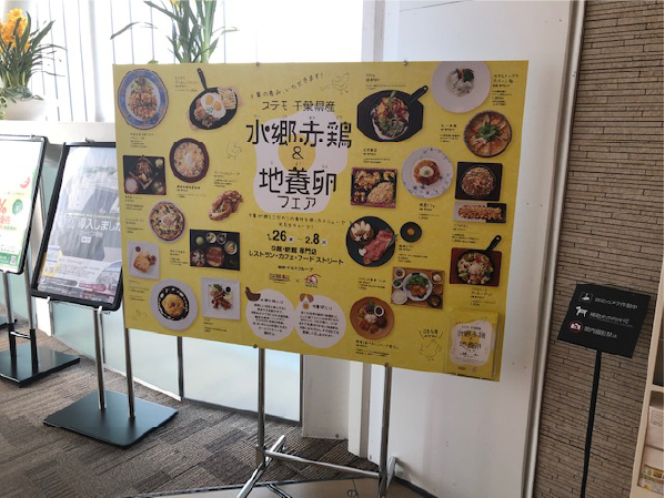 「地元産の食材を使ったメニューフェアをタイアップで開催して、レストランを盛り上げたい」とのご要望を受け、マルトグループ様に依頼。千葉県のブランド鶏「水郷赤鶏」とブランド卵「地養卵」をご提供いただき、多くのレストランにご参加いただきました。目を引くやわらかい黄色地に、素朴で可愛らしい線画のイラストや丸い書体を用いたデザインを作成。百貨店では「水郷赤鶏」「地養卵」の販売も実施、お客様の買い回りにも貢献するコンテンツとなりました。