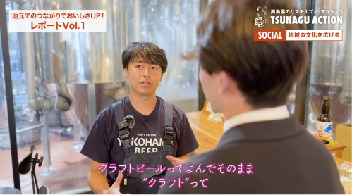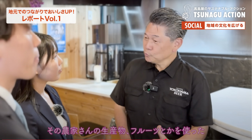 高島屋のサステナブルな企業活動「TSUNAGU ACTION」の一環として、高島屋横浜店の取り組みを紹介するYouTube動画を制作。“地域の伝統や文化を伝え、広げていく”をテーマに、横浜・関内にあるクラフトビール醸造所「横浜ビール」を若手社員2人がレポートする様子を撮影・編集しました。若手のフレッシュな雰囲気をいかしながら、TSUNAGU ACTIONの取り組みをわかりやすく伝えることを心がけました。